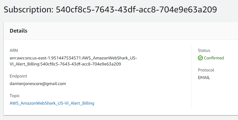 All done! Next time we’ll be using our new SNS topic to set up some billing alerts.